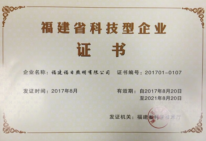 近日,福建省科学技术厅公布2017年第一批福建省科技型企业备案名单,华体网页版登录界面控股企业福建福日照明有限公司被推荐认定为福建省科技型企业。