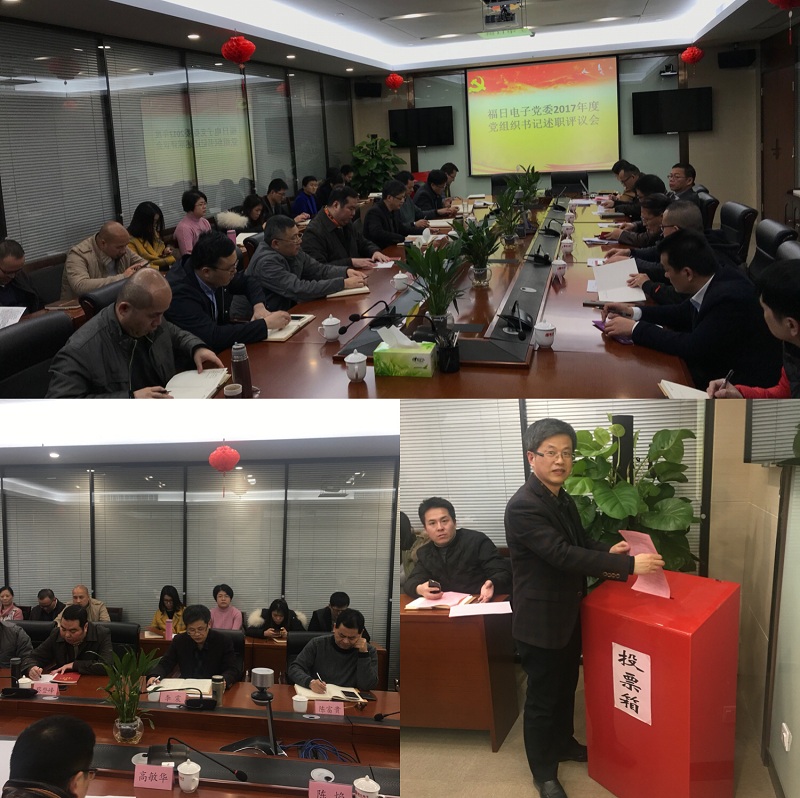 2018年1月25日下午,华体网页版登录界面党委召开2017年度党组织书记抓基层党建工作述职评议会,公司党委书记李震主持会议。会上福日实业公司党支部、福顺微电子公司党支部、光电事业部党支部、机关党支部等6个所属党组织书记,围绕一年来抓基层党建工作取得的成效、今后努力方向等方面分别作了现场述职或书面述职。公司领导班子成员、所属企业、事业部党支部书记及基层党员干部职工代表30余人到会听取了述职并进行了认真评议。