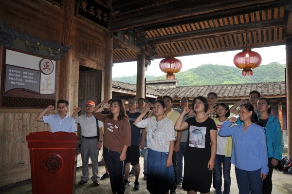 参观完旧址后,在党委书记李震的带领下,新老党员面对旧址大厅鲜红的党旗庄严宣誓。通过组织新党员进行入党宣誓和老党员重温入党誓词行动,让党员“不忘初心、牢记使命”,不断保持共产党员的先进性,以更加饱满的热情投身各自工作,切实发挥先锋模范作用,永葆共产党员的政治本色。