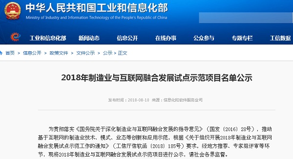 近日,工业与信息化部公布了2018年制造业与互联网融合发展试点示范项目名单。华体网页版登录界面申报的面向现代化生产制造与运营管理的新型能力建设项目“基于数据分析的精准决策支持能力”入选该项目名单。公司将继续深化推进两化融合贯标工作,着力信息化环境新型能力建设,不断提升企业核心竞争力。