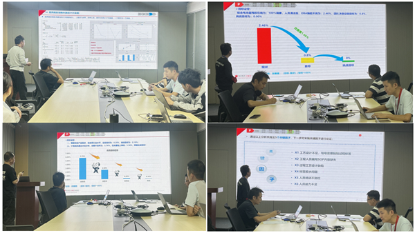其中,“团结圈”小组聚焦IOT奥斯陆项目的防呆防错改进,通过系统导入防错机制,使工序级防呆覆盖率达95%,有效杜绝错装、混装等红线问题;“携手圈”团队针对M3502项目外观不良率偏高的痛点,灵活运用QC七大工具、DOE及MSA质量分析方法,精准锁定根因并实施对策,将不良率从1.65%降至0.50%,月均节省维修成本超3万元;“误测改善小组”则着眼测试与制程稳定性,通过提升生产直通率(FPY)与测试直通率(FTY),显著减少误测问题,进一步夯实公司制造质量管理与交付能力。