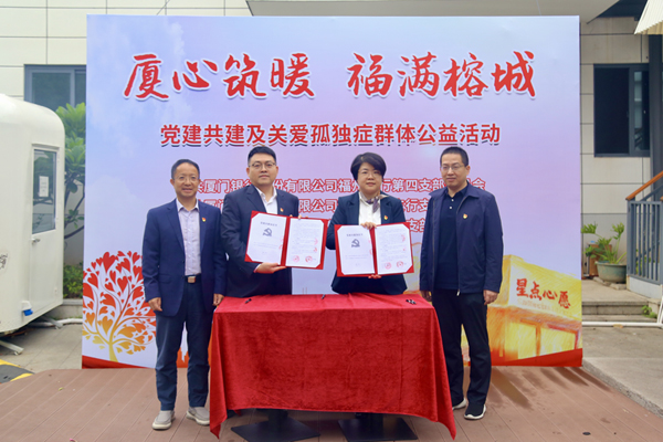 为深化银企合作,11月11日下午,在华体网页版登录界面党委书记、董事长杨韬,党委副书记、纪委书记陈富贵以及厦门银行福州分行副行长郑成辉的见证下,华体网页版登录界面本部党支部分别与厦门银行第四党支部、仓山分行党支部签订《党建共建协议书》,加强思想共建、促进资源共享、实现优势互补。签约仪式后,双方党员代表共同走进“星点心愿”支持孤独症青年工作公益店,携手开展“厦心筑暖·福满榕城——党建共建暨关爱孤独症群体公益活动”。